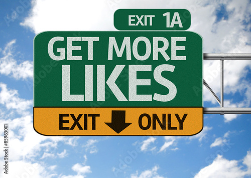 Fototapeta premium Get More Likes road sign with sky background