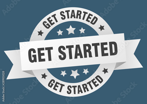 Fototapeta premium get started ribbon. get started round white sign. get started