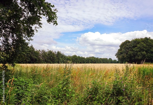 © Heinrich, Obraz premium Getreidefeld am Waldrand