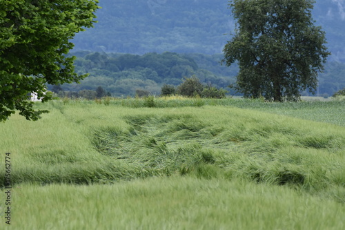© JuLa, Obraz premium Getreidefeld nach dem Sturm