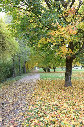 © Zehra, Naklejka premium getrocknete gelbe Blätter auf dem Boden