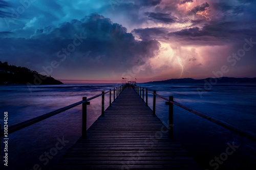 © Erkan Eren, Obraz premium Gewitter am Meer mit Steg