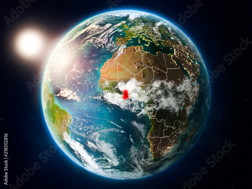 Fototapeta premium Ghana with sunset from space