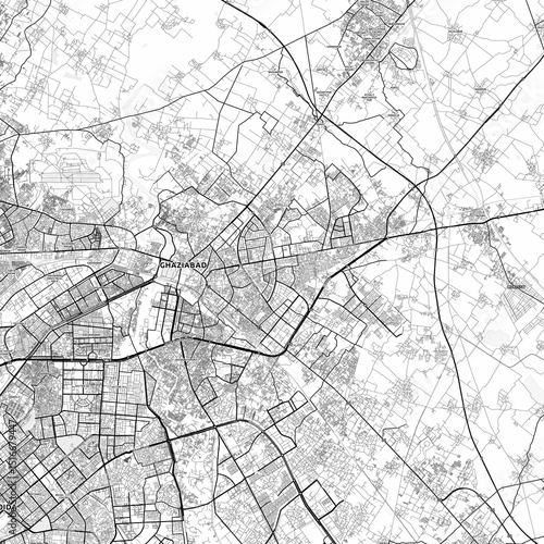 © Knut Hebstreit, Fototapeta premium Ghaziabad Area Map with Labels and Neighborhoods - One color, minimalistic design