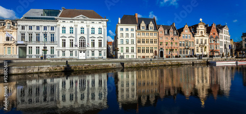 © Dmitry Rukhlenko, Naklejka premium Ghent canal. Ghent, Belgium