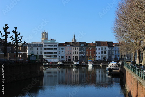 © Aldercy Carling, Naklejka premium Ghent canal houses and skyline on a sunny day (Belgium)