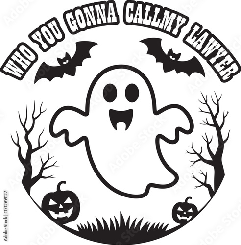 © MOHAMMAD, Fototapeta premium Ghost bats pumpkins spooky trees text halloween