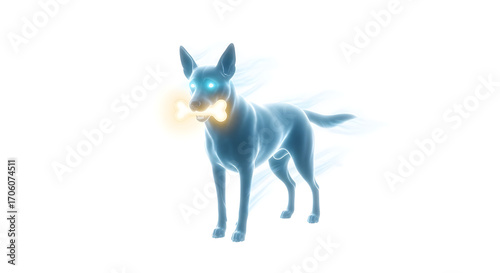 Obraz premium Ghost Dog with Bone Ethereal Canine Companion in White