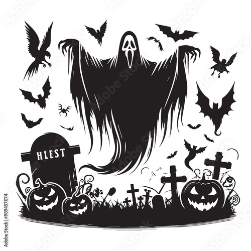 © Act, Fototapeta premium Ghost Halloween vector silhouette full black color white background