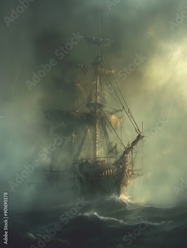 Obraz premium Ghost Ship at Sea
