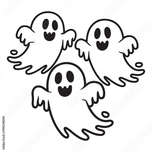 Fototapeta premium Ghost Silhouette Vector Trio – Halloween Spooky Black Graphic..ghost,...