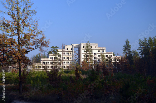 Naklejka premium Ghost town in Eastern Europe.Former Soviet kids camp.Ukraine gets rid of the consequences of communism. Ruins. Kiev Region,Ukraine
