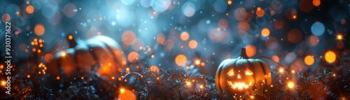 © NUTTAWAT, Naklejka premium Ghostly Garlands with Flickering Halloween Lights