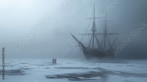 © Nandar, Fototapeta premium Ghostly ship in a snowy fog