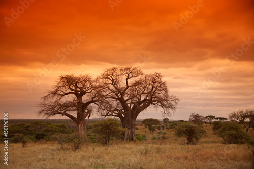 Obraz premium Giant Baobab trees (Adansonia digitata) at sunset, Tarangire National Park,...