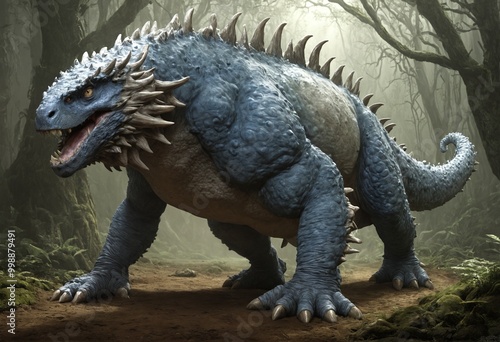© Alexander Priyomko, Obraz premium Giant Blue Dinosaur in Forest