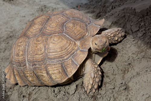 © Natalya Zavyalova, Obraz premium Giant brown turtle on the sand