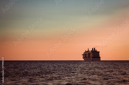 © InfinitumProdux, Fototapeta premium Giant cruise ship at sunset
