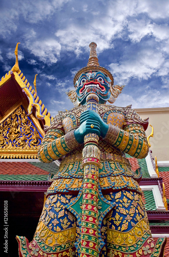 © Zzvet, Obraz premium Giant demon guarding an exit to Wat Phra Kaew in Bangkok, Thailand.