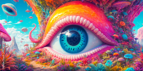 Fototapeta premium Giant Eye in a Psychedelic Landscape.