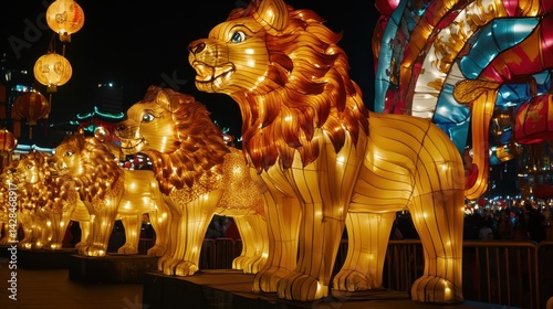 Fototapeta premium Giant glowing animal-shaped lanterns on display at a cultural light festival,...