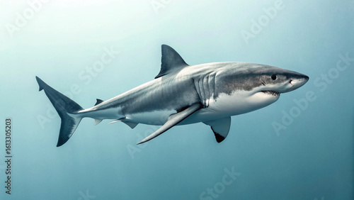 Naklejka premium Giant Great White Shark Jaws Agap Dark Waters Oceanic Predator Imposing on...