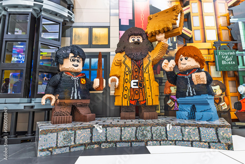 © SellStock, Fototapeta premium Giant Lego sculptures of wizarding heroes on display in colorful toy store. London, UK, 2 June 2024