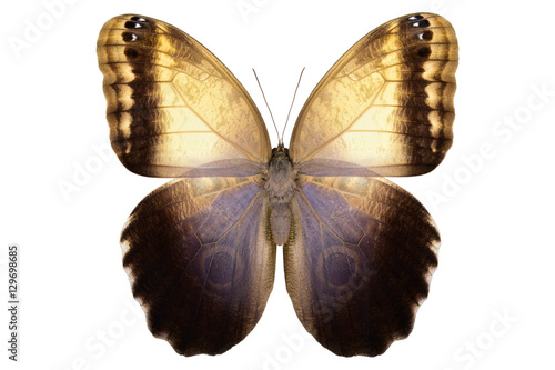 Obraz premium Giant Owl butterfly (Caligo memnon, male, upside) from Amazon rainforest isolated on white background