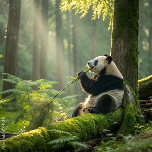© MSTKHADIZA, Obraz premium giant panda eating bamboo