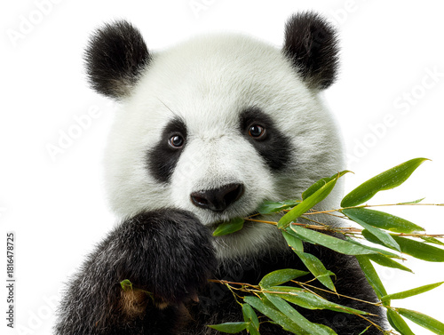 © stockimage by Shamim, Naklejka premium Giant panda eating bamboo isolated on transparent background