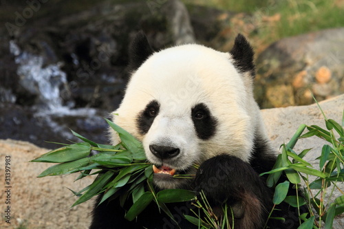 © mary416, Fototapeta premium giant panda eating bamboo leaves in Hong Kong Ocean Park
