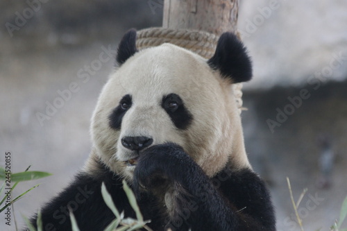 Fototapeta premium Giant Panda Eats Bamboo Leaves, China