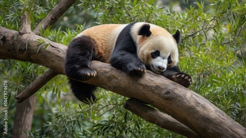 © Pindo, Obraz premium giant panda on a tree