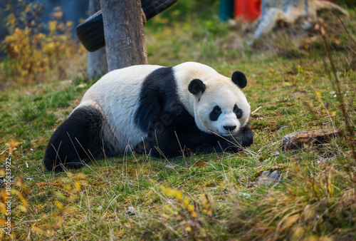 © why2husky, Obraz premium Giant Panda Resting on Grass