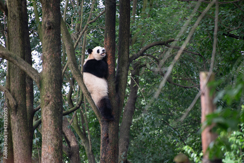 Obraz premium Giant panda up on a tree branch