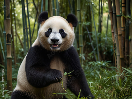 © Pinky kaninuma, Fototapeta premium Giant pandas strolling through a bamboo forest