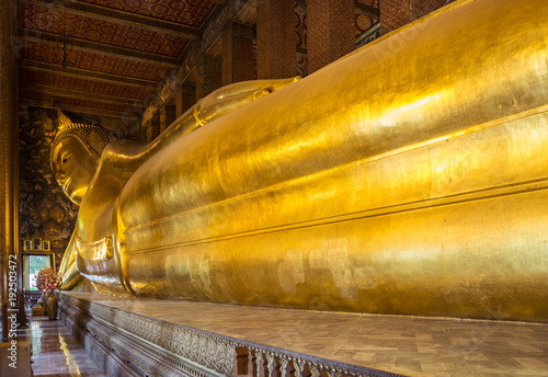 © tanaonte, Fototapeta premium Giant reclining buddha at Wat Pho Temple in Bangkok