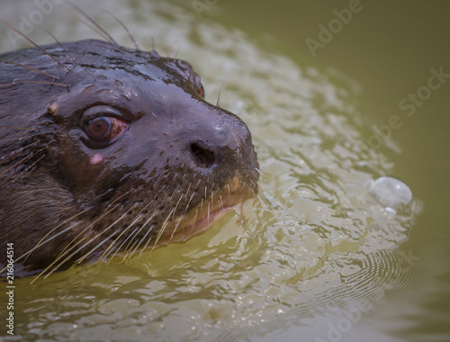 © Jo, Obraz premium Giant River otter close up of face in water of Brazil.CR2