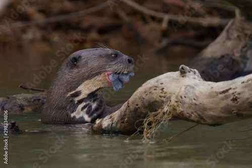 © Barry, Fototapeta premium Giant river Otter eating fish