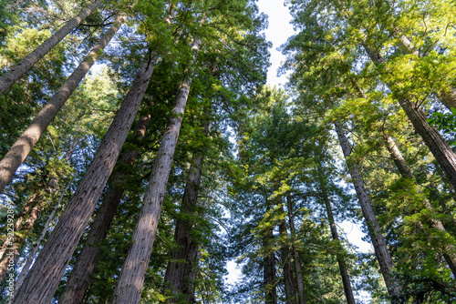Fototapeta premium giant tall redwood trees reaching towards the sunny sky