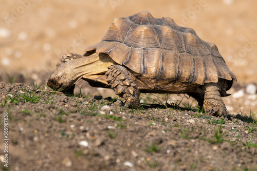 © Ian, Fototapeta premium Giant Tortoise Walking on Grass