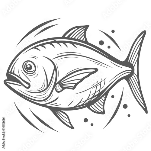 Fototapeta premium Giant Trevally Fish Line Art Illustration