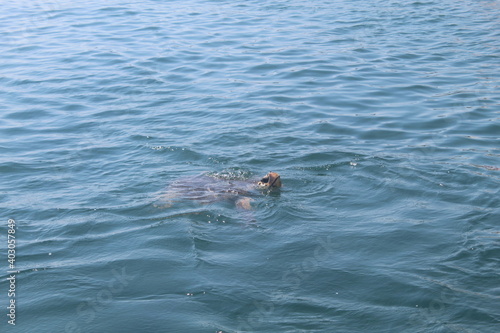 Obraz premium Giant turtle swims in the sea
