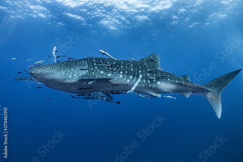 © Adam, Naklejka premium giant Whale shark swimming underwater with scuba divers