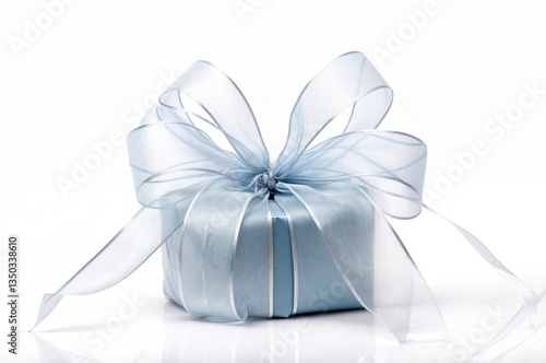 © Megalith, Naklejka premium Gift bleu box with blue shiny satin bow and ribbon on white background