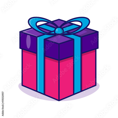 © Hi Dream, Obraz premium Gift box cartoon vector icon illustration. flat icon box
