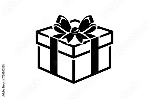 © Larisa, Obraz premium Gift box design featuring elegant bow and contrasting stripes, perfect for celebrations