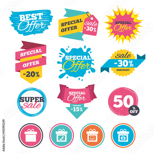 © blankstock, Obraz premium Gift box sign icon. Present symbol.