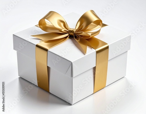 © RR 27, Obraz premium Gift box tied ribbon isolated on white background