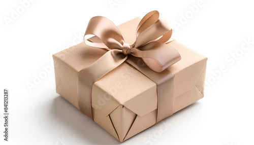© Oleksiy, Obraz premium Gift box tied with satin ribbon isolated on white background
